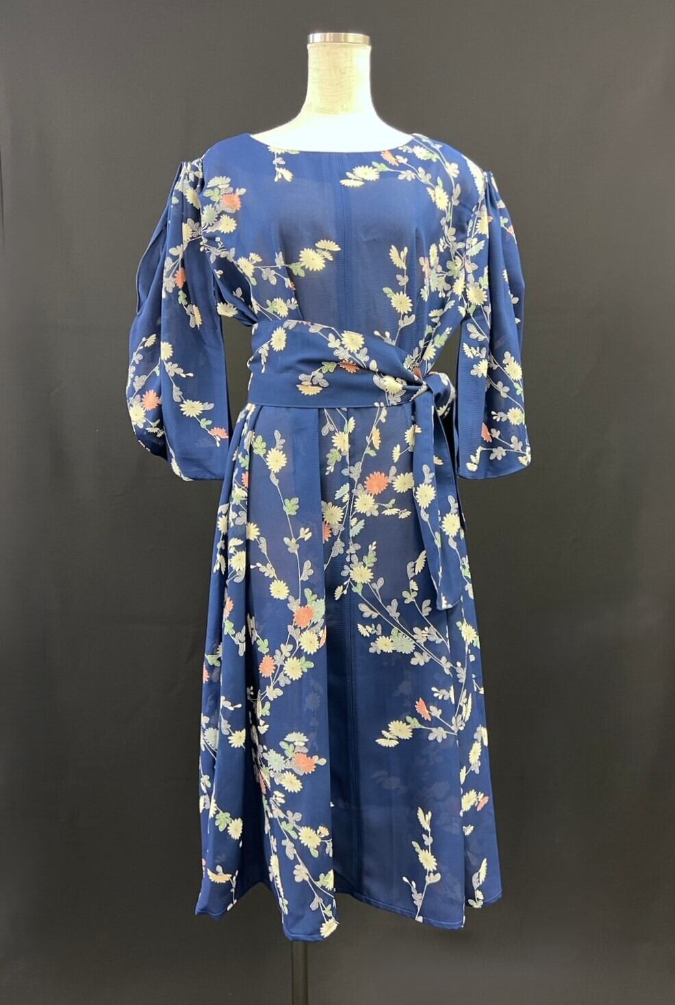 こちらの瑠璃色花柄ワンピースは、深い瑠璃色と華やかな花柄が特徴です。女性らしさを引き立てる美しいシルエットと、軽やかな素材感が魅力で、カジュアルなお出かけから特別なシーンまで幅広くご活用いただけます!